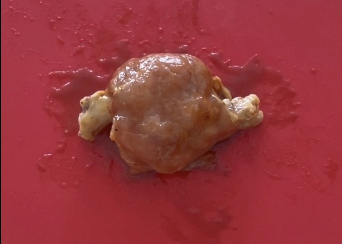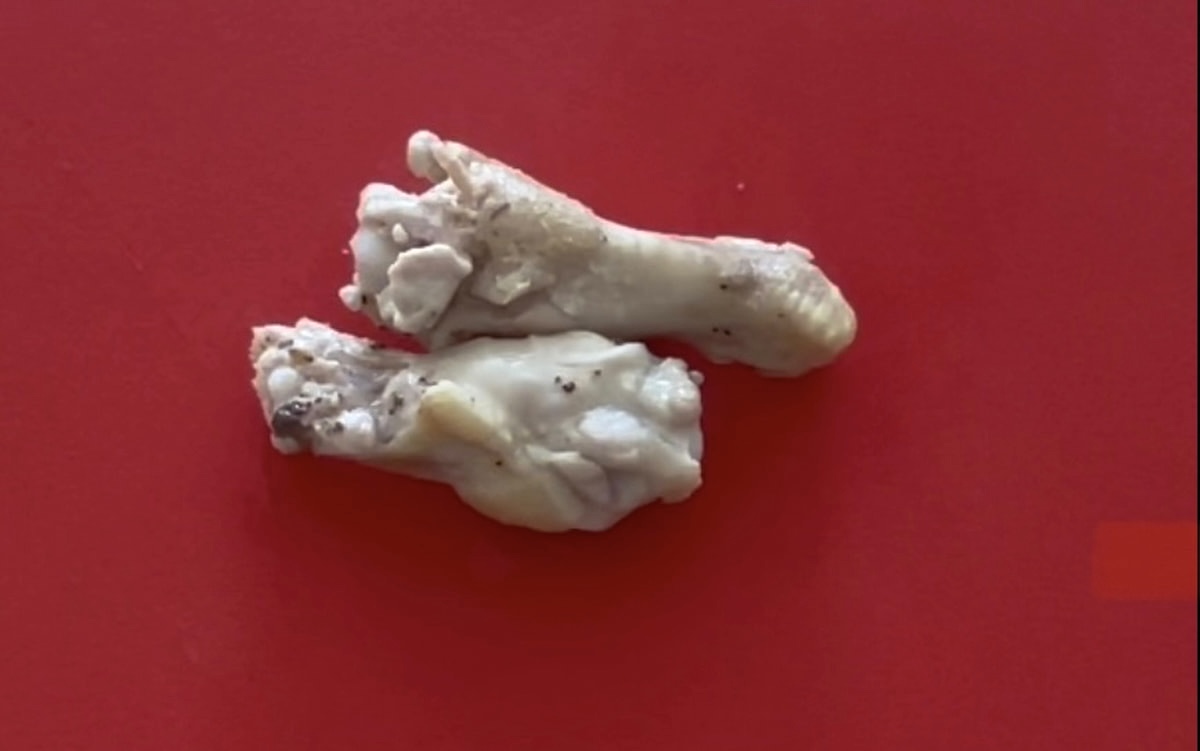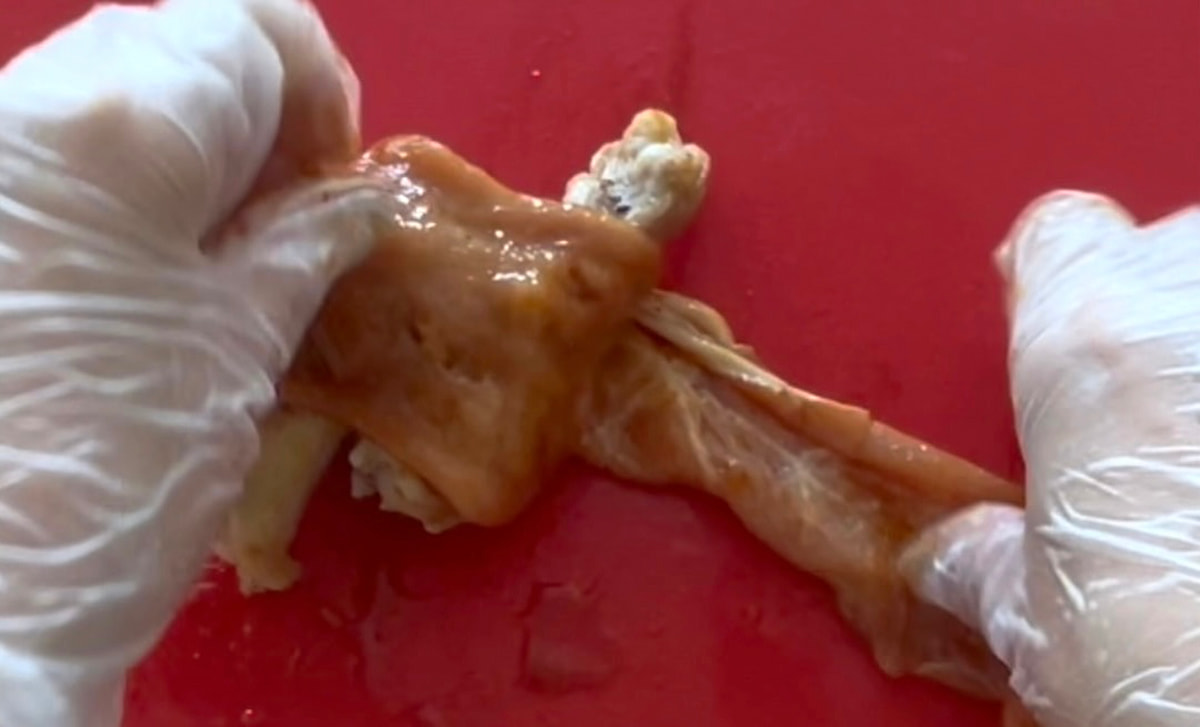 2. 加熱した鶏手羽元の粗熱が取れたら、骨部分を外向きに2本並べて置く。