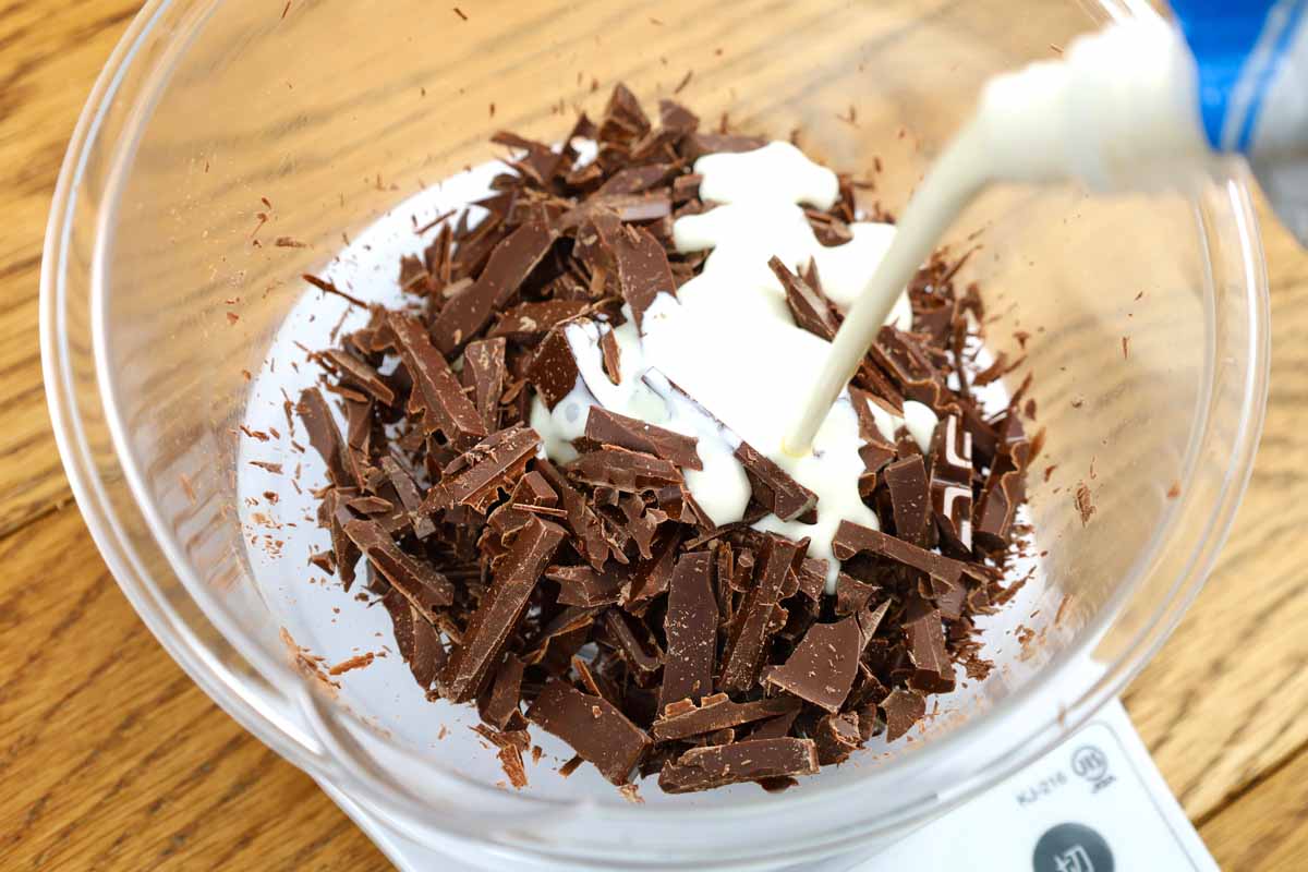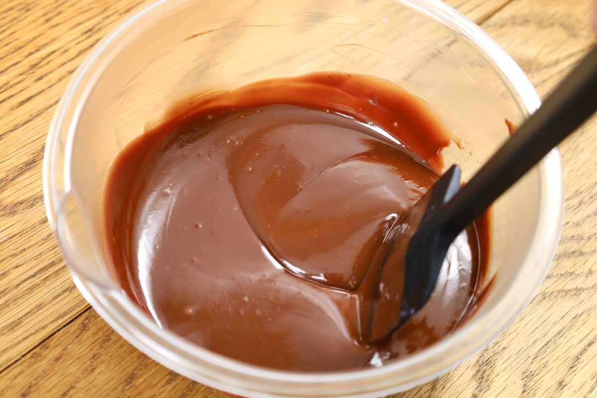 このとき、生クリームを一気に加えてしまうと、チョコレートの一部分が冷え固まってダマができてしまうので注意!