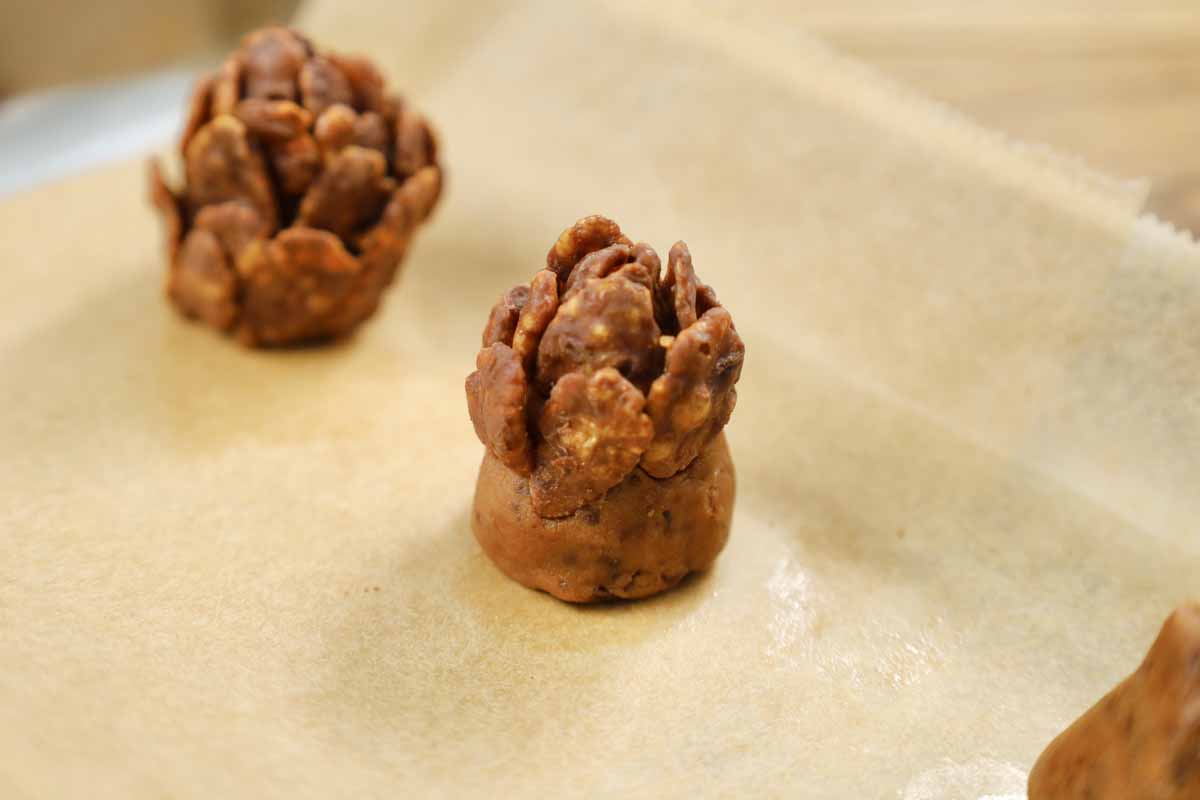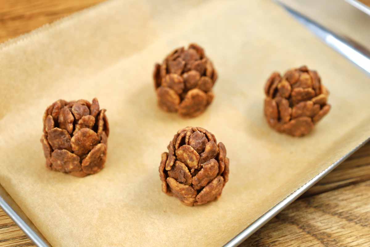 ふと…ここに松ぼっくりの飾りがあったらかわいいだろうな~と思い、作ってみたのですが、かなりかわいらしかったので簡単にご紹介しておきますね!チョコパイ1個をよ~くもみもみしてから牛乳を数滴混ぜ合わせ、