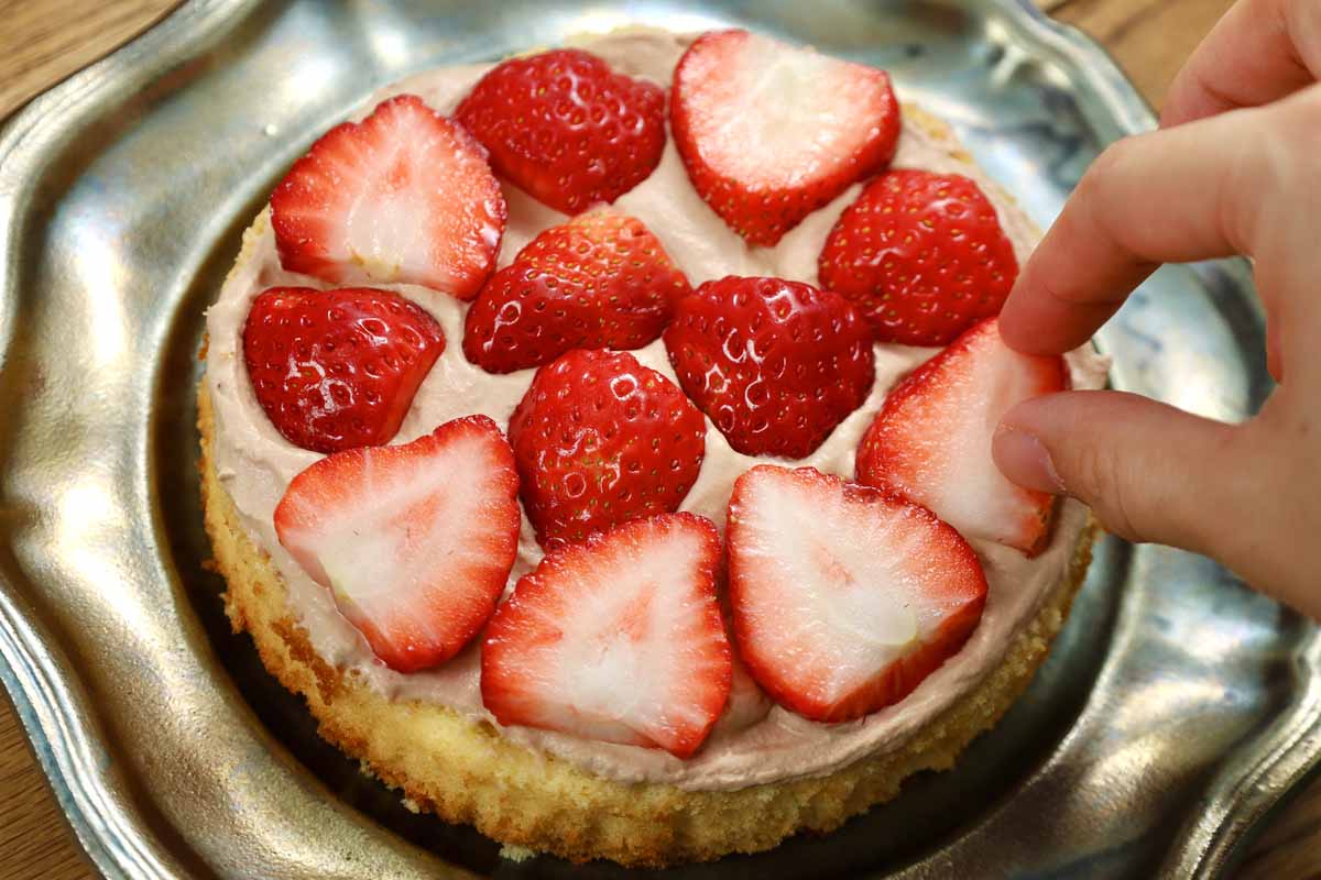 ケーキにのせたいちごをいくつか取り除いて、松ぼっくりに置き換えてみたのですが、
