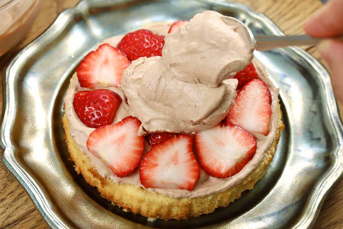 先ほどと同じくらいの量のチョコ生クリームをのせて