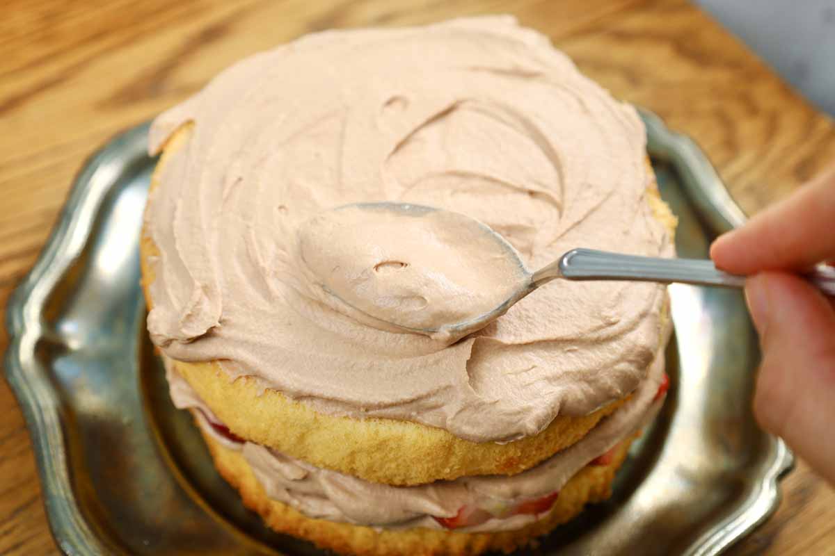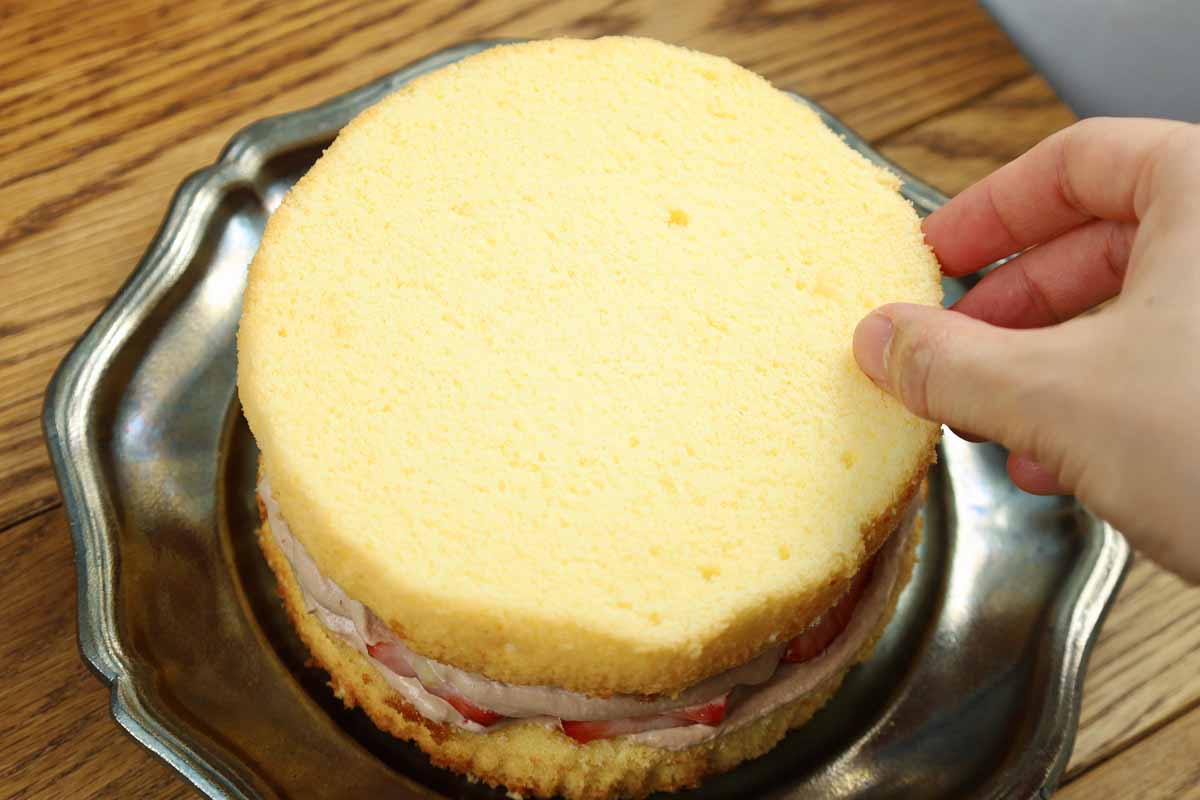再び平らにならします。もしスポンジからクリームがはみ出てしまっても、スプーンですくって除けばOK!