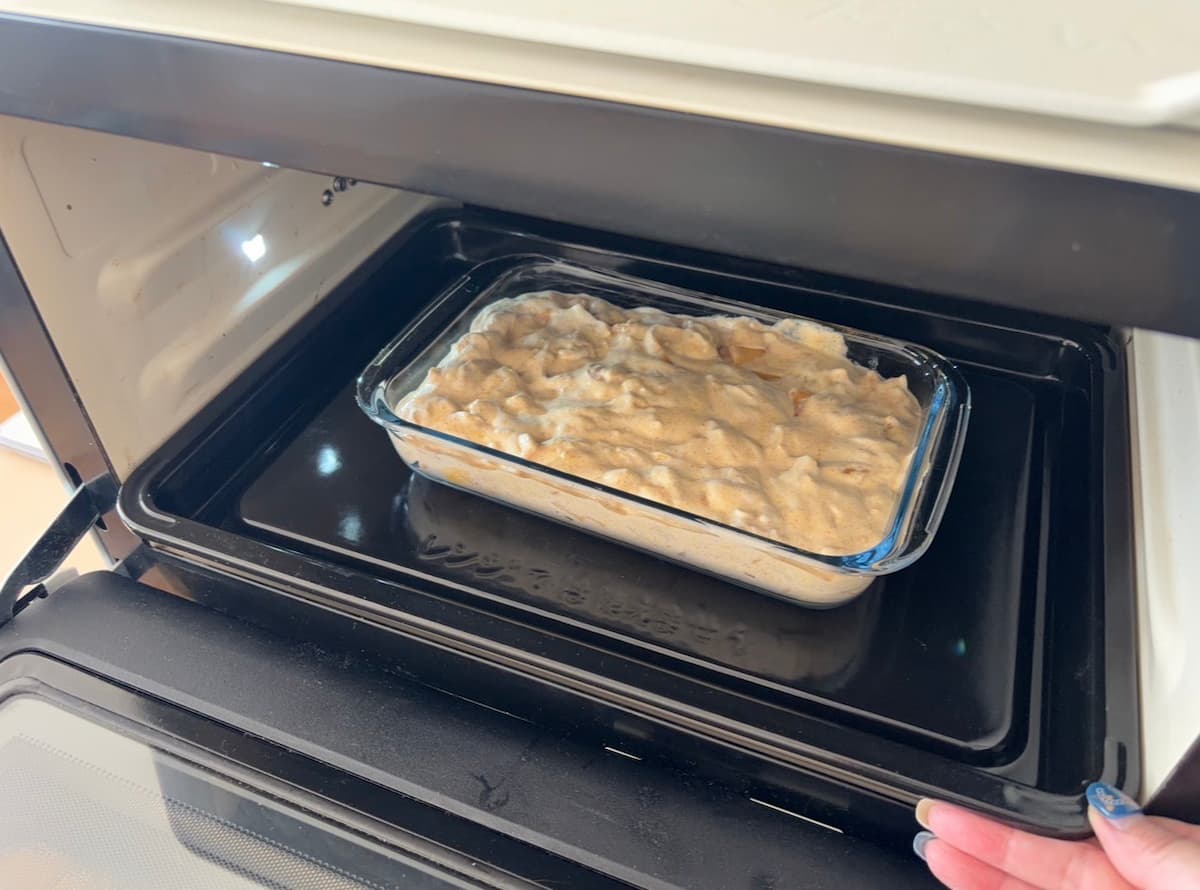 5. 耐熱容器(グラタン皿など)に流し入れ、170℃のオーブンで20〜25分ほど焼いたら完成!