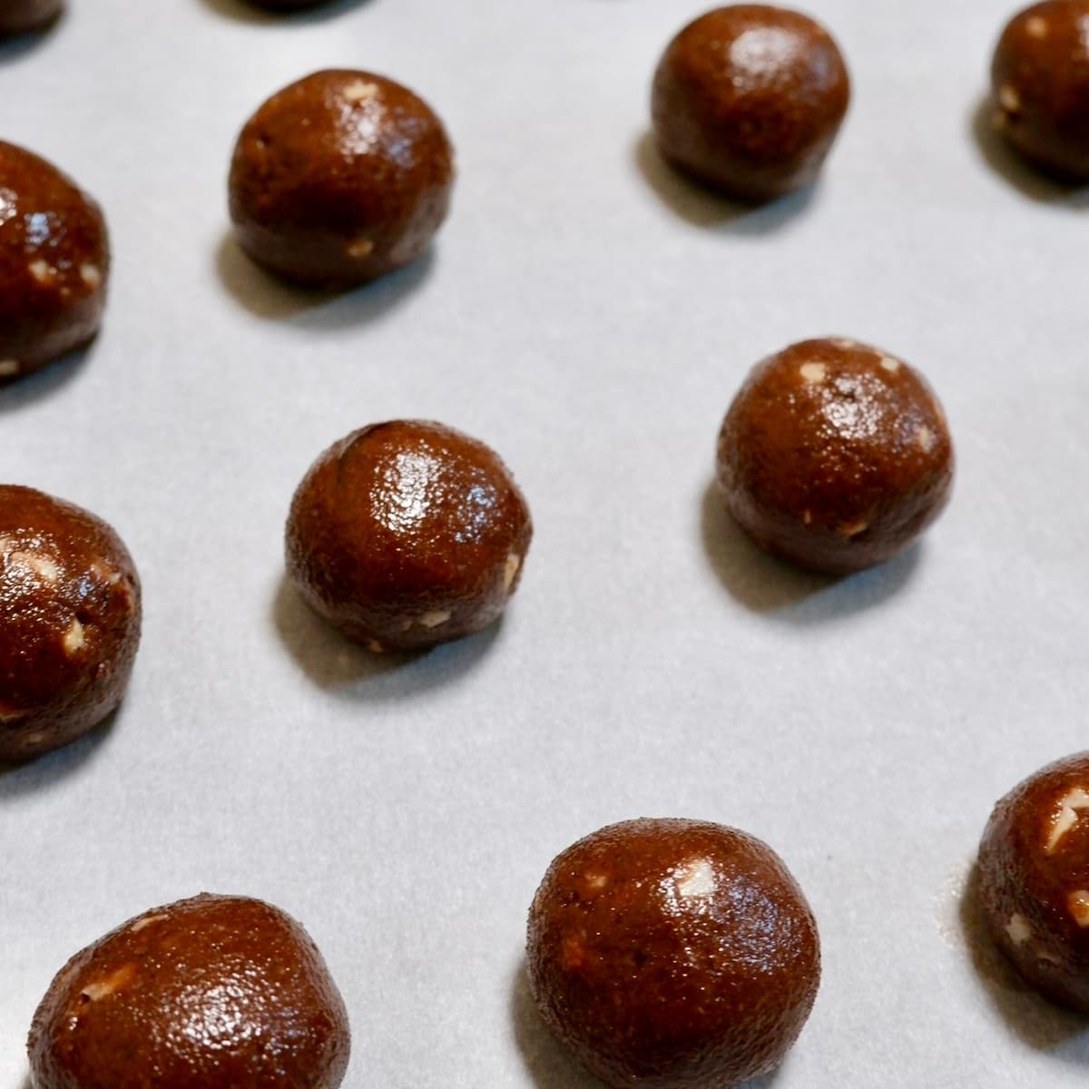 3. 25等分くらいに丸め、オーブンシートを敷いた天板に並べる。180℃に予熱したオーブンで約20分焼く。