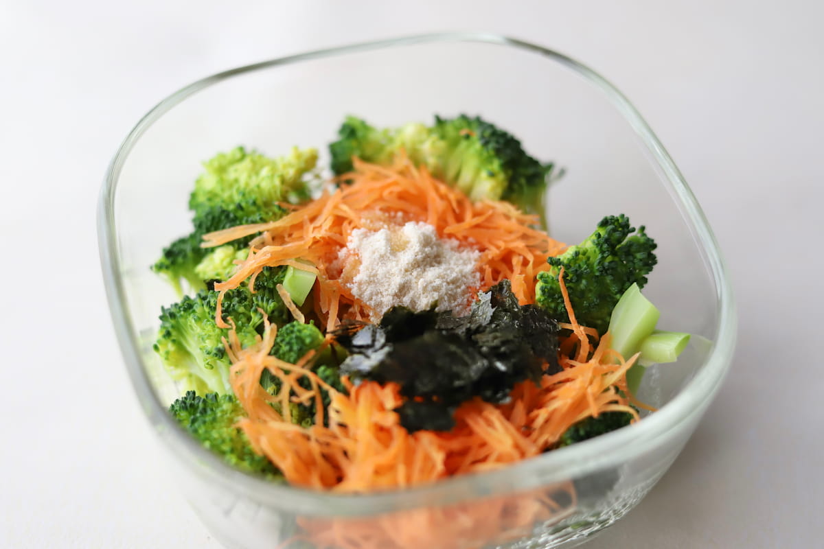 冷凍でお弁当に!「ブロッコリーとにんじんの海苔ナムル」の簡単作り置き