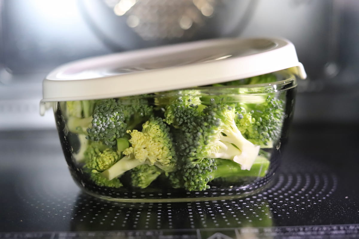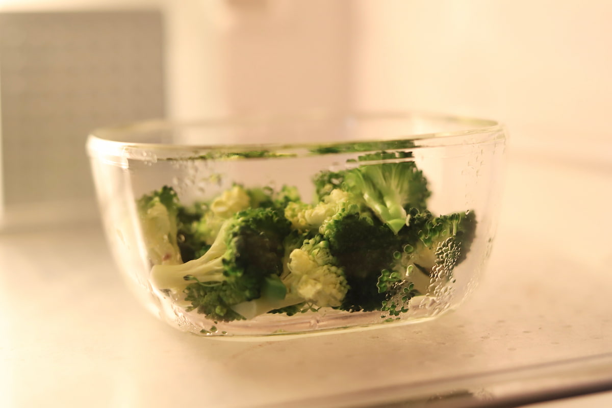 4. 電子レンジから取り出し、ふたを取ったら、すぐに冷蔵庫の一番上の段で冷やす。