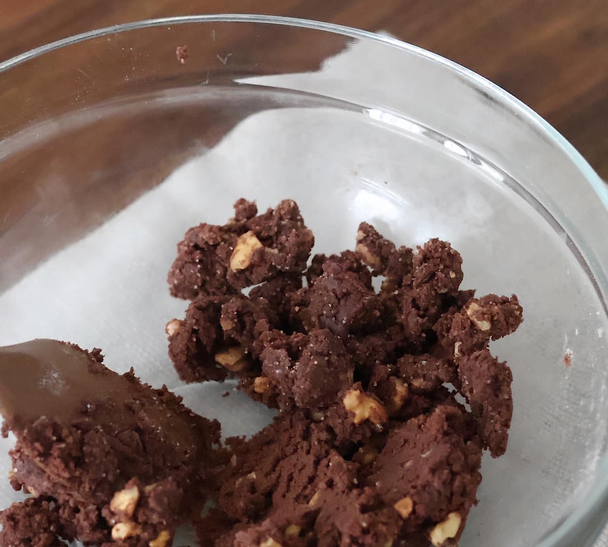 3. 天板にクッキングシートを敷き、2を10〜11等分にし、手で丸める。