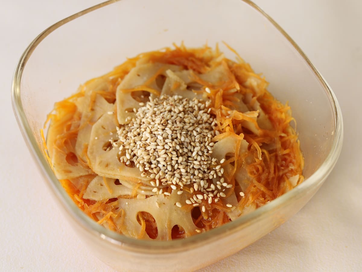 フーディストノートアンバサダーのひとみさんに、れんこんとにんじんで作る定番きんぴらを電子レンジで簡単に作れるレシピを教えていただきます!シャキシャキ食感が楽しめ、冷凍保存もOK。お弁当作りに便利な副菜です。