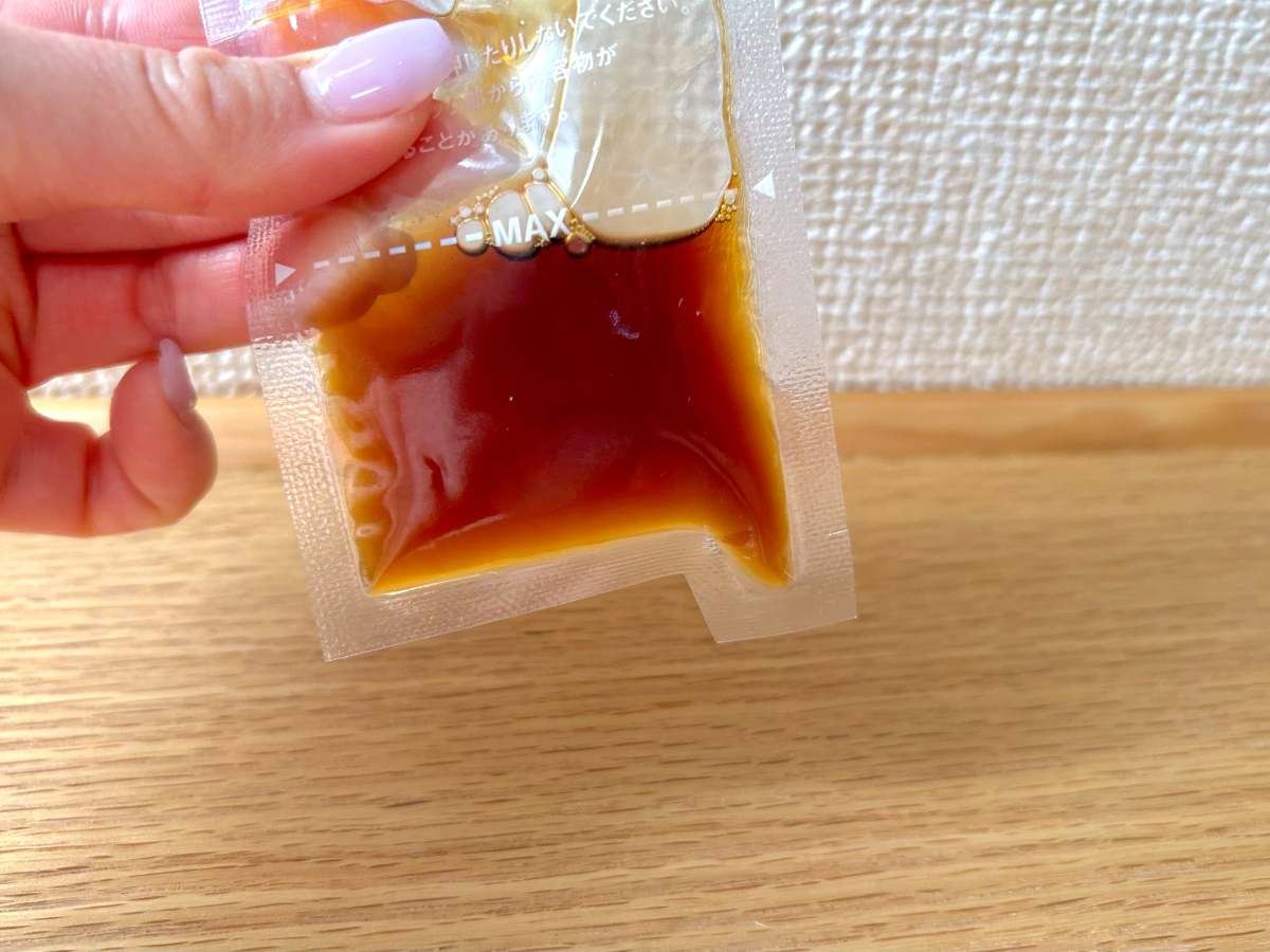 調味料を使うときは、ダブルチャックとは逆側にある先端部分を切って開封します。先端部分には切り込みがあるのでスムーズに開けられます。